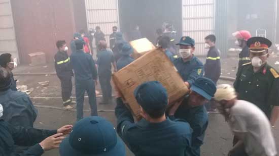 Phóng viên Tin Tức có mặt tại hiện trường cho biết, lực lượng chức năng đã phải phá tường mở lối vào, tạo điều kiện cho xe chữa cháy tiếp cận, dập lửa. Một khó khăn là nguồn nước tại khu công nghiệp thiếu, các xe chữa cháy phải hút nước từ họng nước trên đường Tam Trinh, nên đến 16h45 lửa vẫn đang hoành hành rất dữ dội, nhất là trong điều kiện gió lớn. Đến khoảng 20h cùng ngày, đám cháy mới được dập tắt hoàn toàn. Nguyên nhân cụ thể của vụ cháy vẫn đang được tiếp tục điều tra. Xem video lực lượng cứu hỏa nỗ lực dập lửa: